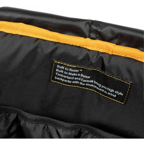 Nouveau sac à dos Eastpak noir uni avec ses finitions camel.